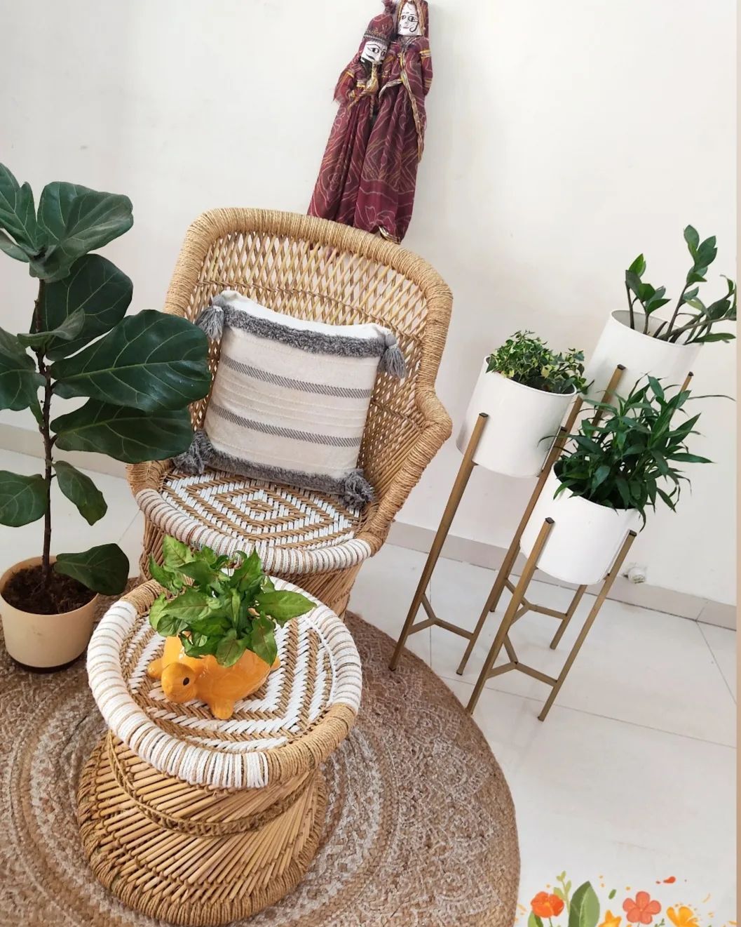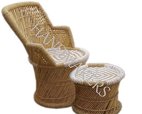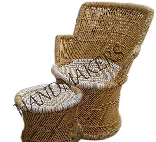 Handmakers Comfortable Relaxing Bamboo Mudda Chair with White color