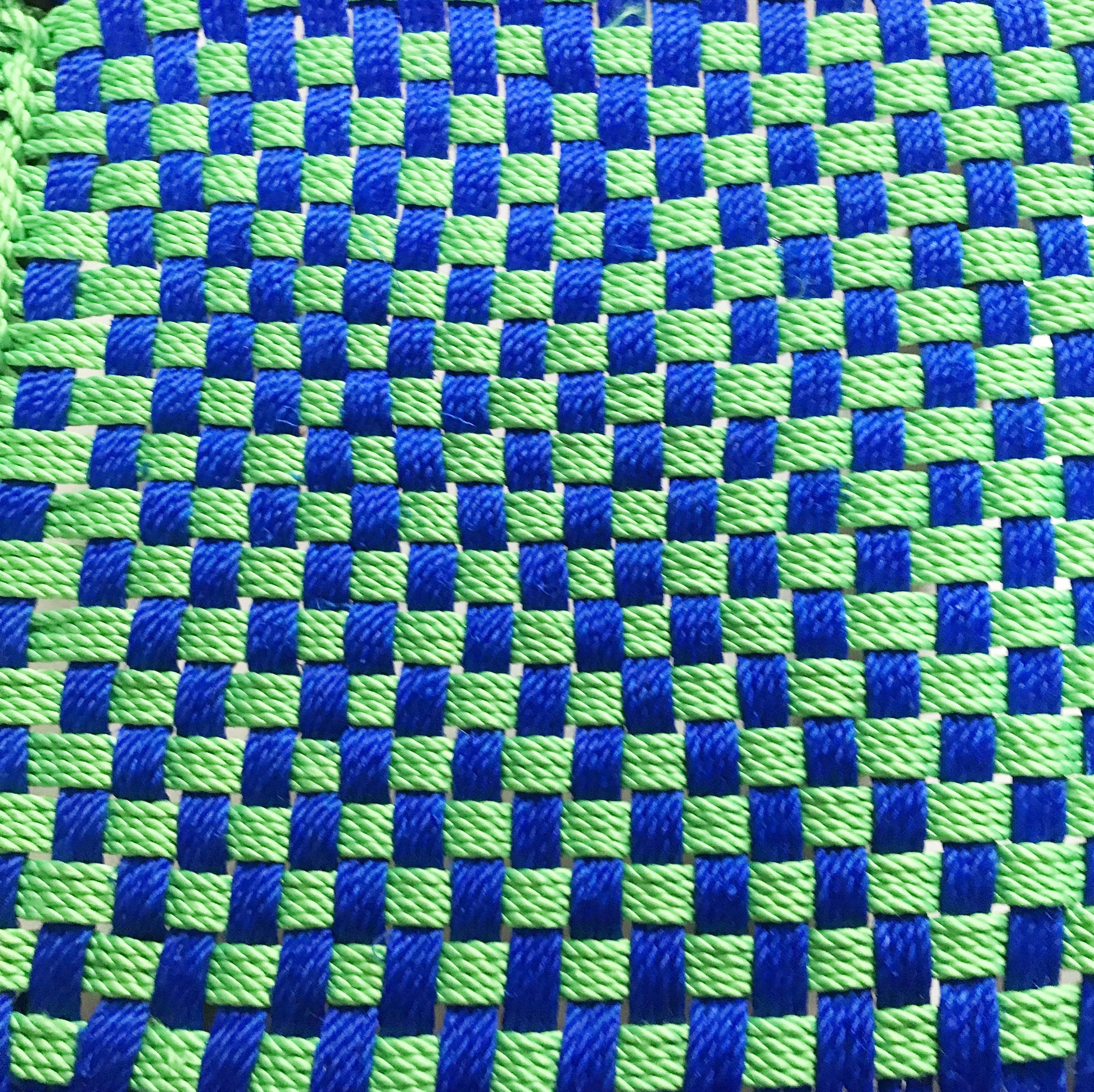 Wooden Weaving Chowki With Green & Blue Chess Board Pattern
