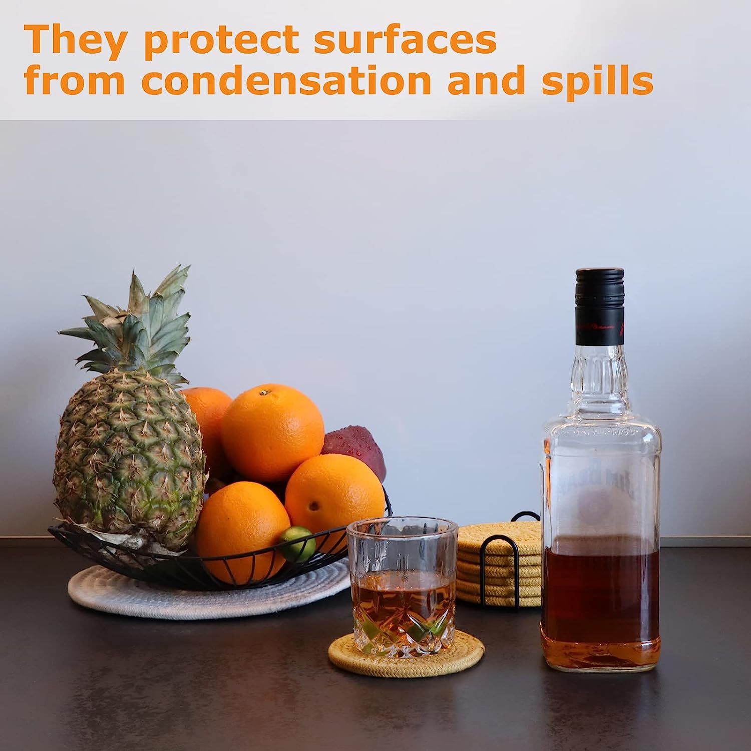 8-Piece Absorbent Coasters Set - Cotton Woven Farmhouse Design for Coffee Table, Home Decor, and Various Cup Sizes