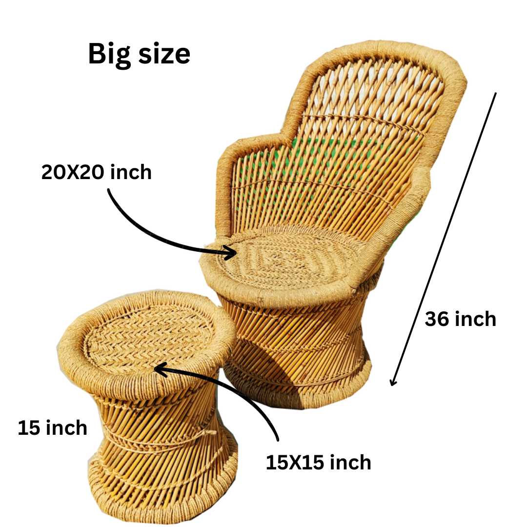 Handmakers ! Bamboo Weaving Mudda Chair Set with 2 Chari and 1 Stool