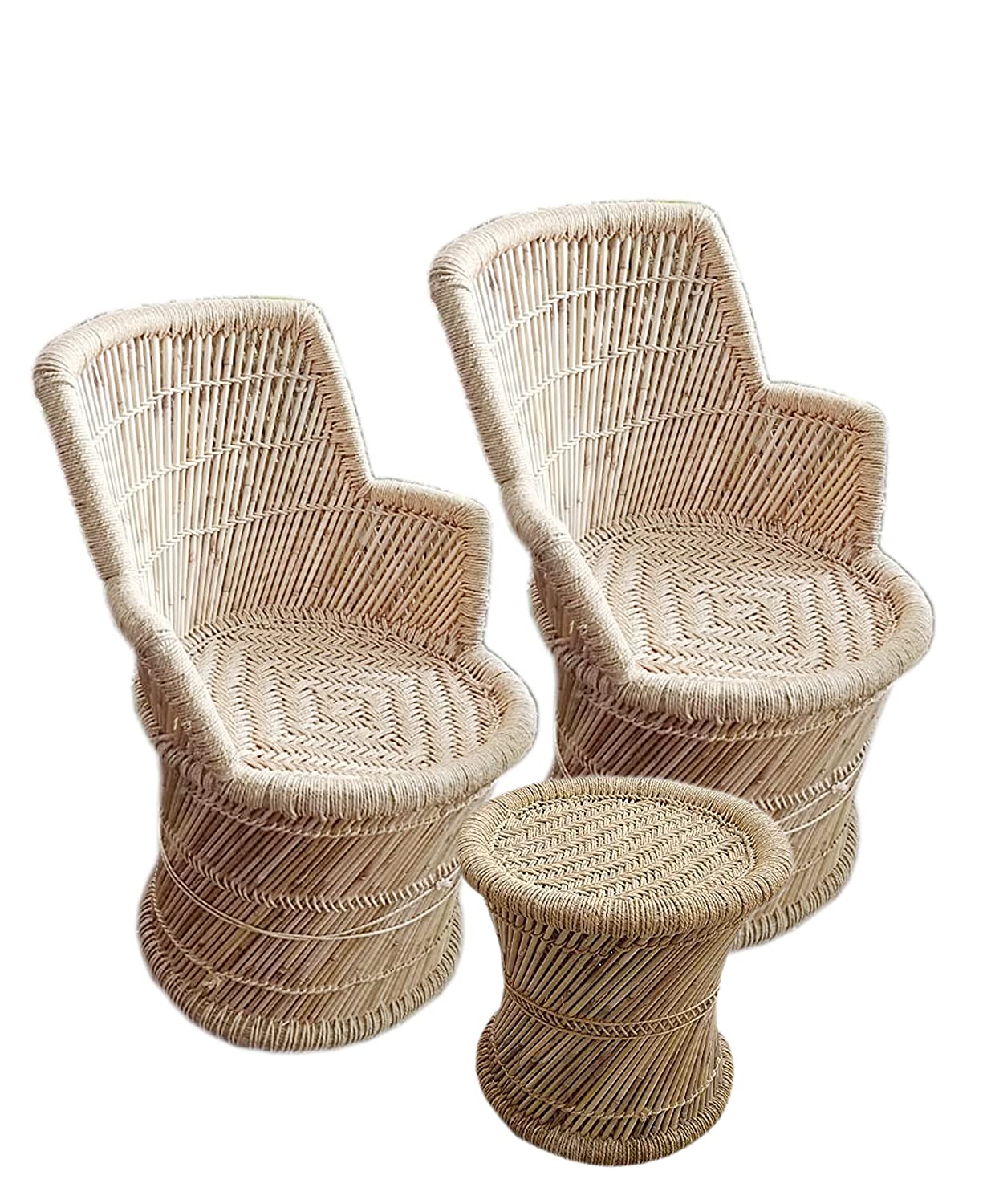 Handmakers ! Bamboo Weaving Mudda Chair Set with 2 Chair and 1 Stool