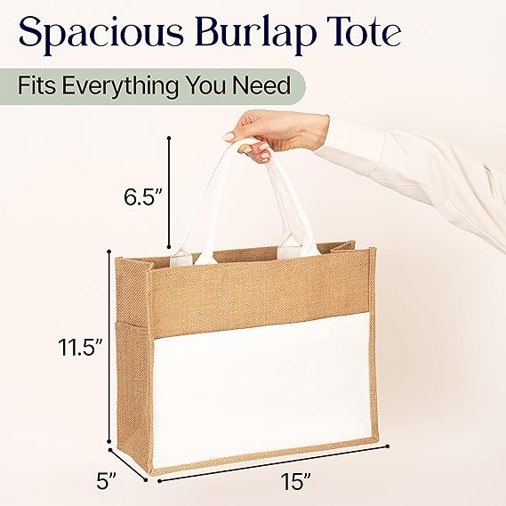 Subtitle: Gift Tote Bags | Burlap Tote Bag for Shopping, Beach, Lunch, and Vacation | Jute Bags with Handles, Woven Handles, Zipper Pocket | White Tote Bag | Bride Tote | Baby Shower Bag