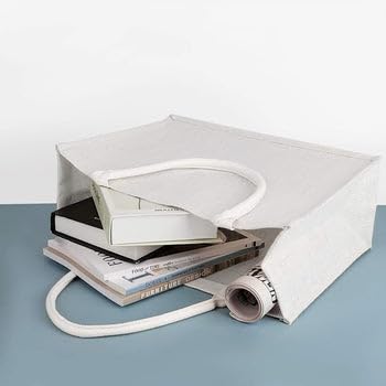 Handmakers White Plain Jute Bags for Return Gifts 12x15x5 inch (Pack of 50)