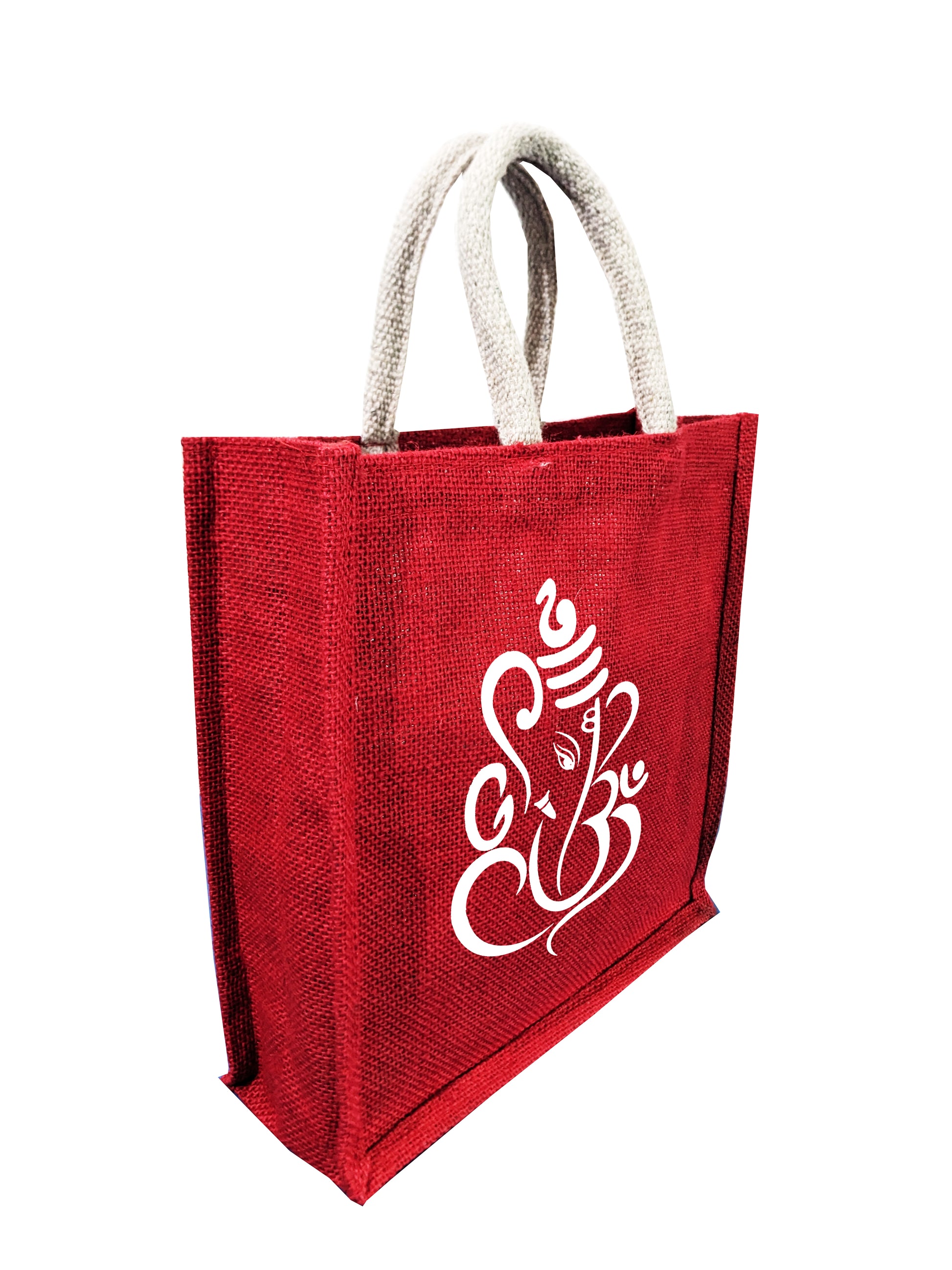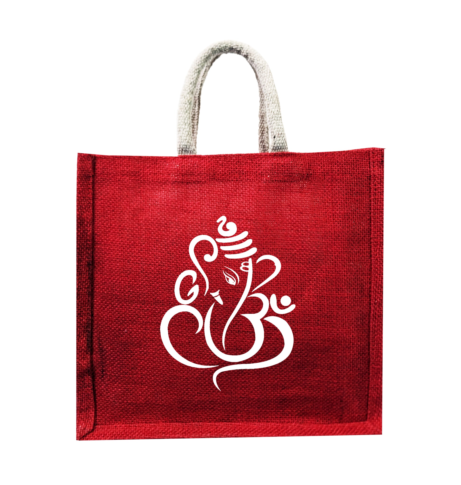 Handmakers Red Jute Ganesh Print Bag | Eco Return Gift Bags