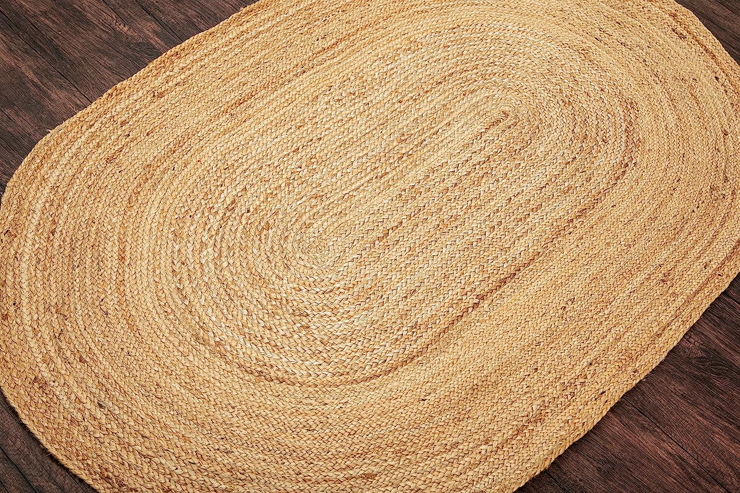 Handmakers Natural Oval Shape Jute Runner Rug for Living Room 2X3 Feet
